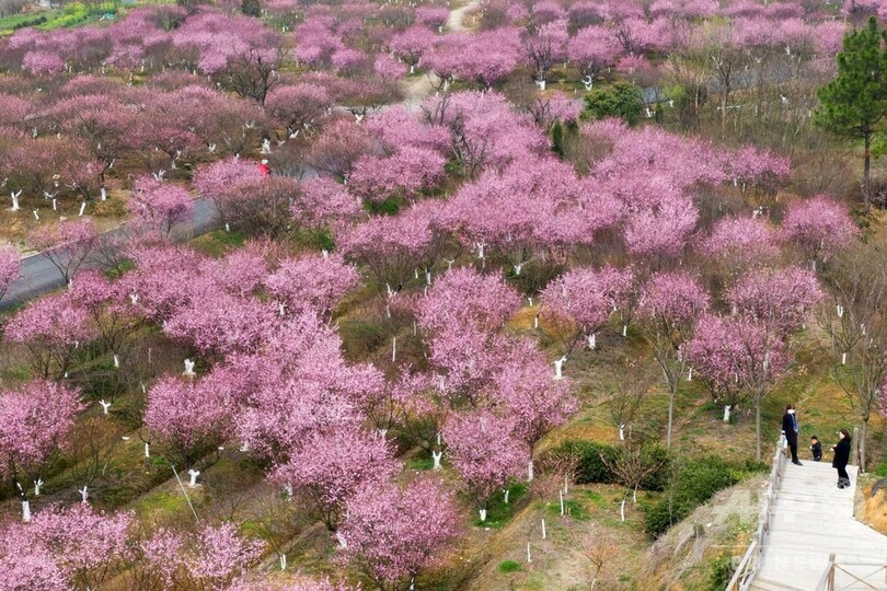 【3月16日 CNS】中国・江蘇省(Jiangsu)南京市(Nanjing)溧水区(Lishui)にある「秦淮梅園(Qinhuai Meiyuan)」では、辺り一面の梅の花が満開となった。(c)CNS/JCM/AFPBB News
