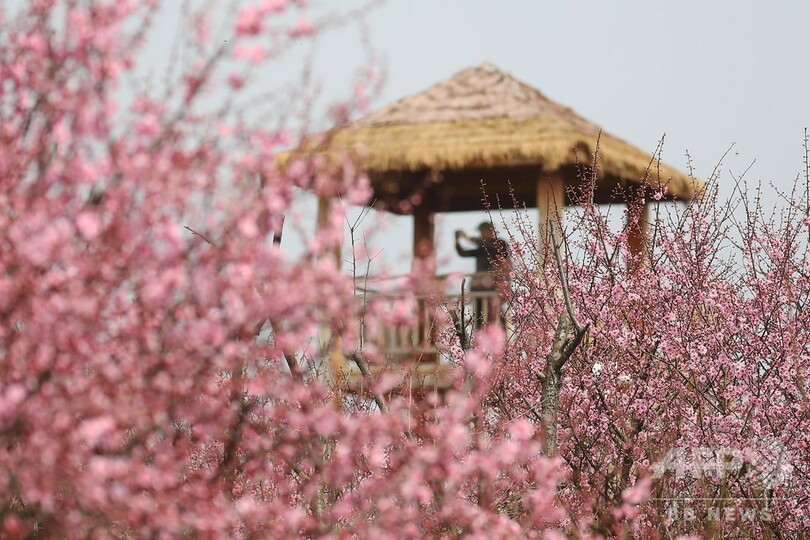 【3月16日 CNS】中国・江蘇省(Jiangsu)南京市(Nanjing)溧水区(Lishui)にある「秦淮梅園(Qinhuai Meiyuan)」では、辺り一面の梅の花が満開となった。(c)CNS/JCM/AFPBB News
