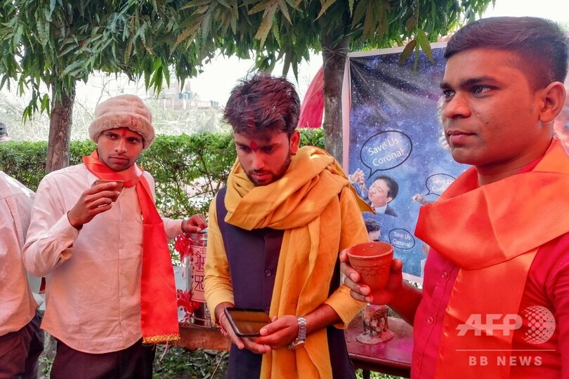 【3月15日 AFP】新型コロナウイルスの感染拡大を阻止するために世界各地でさまざまな努力が続けられる中、インドの首都ニューデリーでは14日、ヒンズー教の活動家数十人が、新型ウイルスから身を守るために牛の尿を飲むパーティーを開いた。
