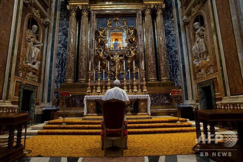 しかしローマ教皇庁(バチカン)によると、教皇はこの日、同市のサンタマリアマジョーレ大聖堂(Basilica of Santa Maria Maggiore)を訪問。その後「巡礼に出るかのように徒歩で」サンマルチェロアルコルソ教会(San Marcello al Corso Church)まで歩いたという。