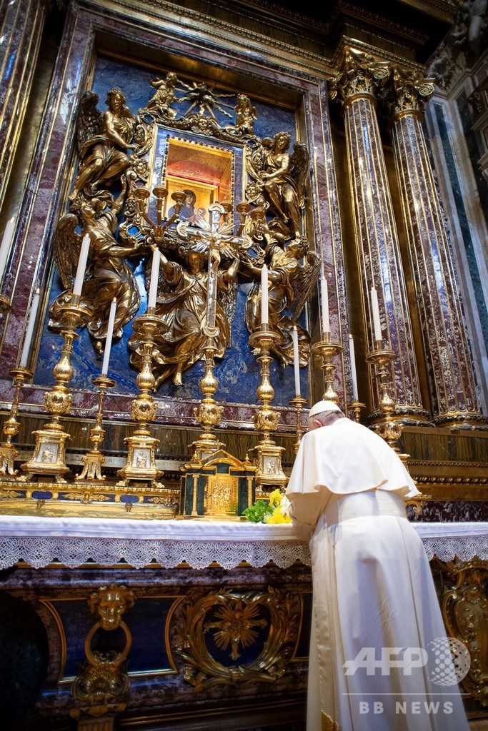 しかしローマ教皇庁(バチカン)によると、教皇はこの日、同市のサンタマリアマジョーレ大聖堂(Basilica of Santa Maria Maggiore)を訪問。その後「巡礼に出るかのように徒歩で」サンマルチェロアルコルソ教会(San Marcello al Corso Church)まで歩いたという。