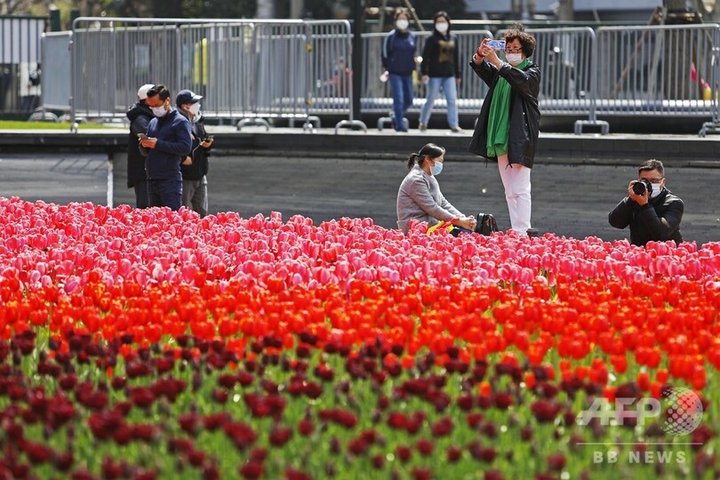 公園内の施設は1日4回以上消毒し、観光客には無料の手指消毒剤を提供。新型ウイルスのため外出できなかった冬を終え、公園を訪れて春を楽しむ人がさらに増えそうだ。(c)CNS/JCM/AFPBB News