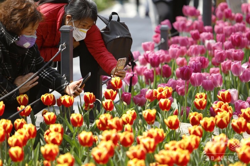 公園内の施設は1日4回以上消毒し、観光客には無料の手指消毒剤を提供。新型ウイルスのため外出できなかった冬を終え、公園を訪れて春を楽しむ人がさらに増えそうだ。(c)CNS/JCM/AFPBB News