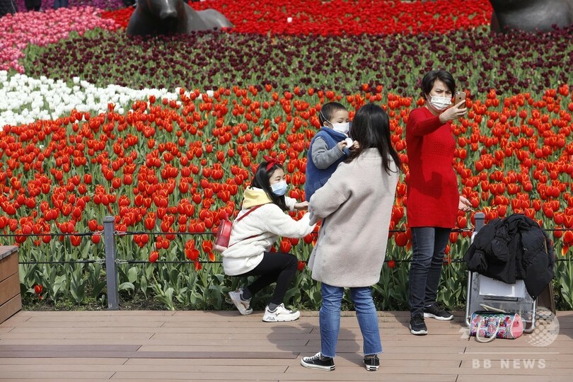 公園内の施設は1日4回以上消毒し、観光客には無料の手指消毒剤を提供。新型ウイルスのため外出できなかった冬を終え、公園を訪れて春を楽しむ人がさらに増えそうだ。(c)CNS/JCM/AFPBB News