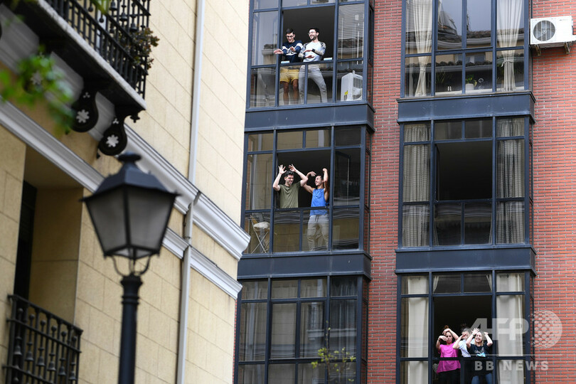 ニュース 社会 今日の1枚 【今日の1枚】きっとうまくいく…苦しい時こそ歌って踊ろう 2020年3月27日 12:15 発信地:マドリード/スペイン [ スペイン ヨーロッパ ] このニュースをシェア ‹ › ❮ 1/3 ❯ 新型コロナウイルスの感染拡大を防ぐためにスペインの首都マドリードが封鎖される中、自宅待機する自らを励まそうと窓辺で歌ったり踊ったりする人々(2020年3月17日撮影)。(c)GABRIEL BOUYS / AFP 画像作成中 ! 【3月27日 AFP】新型コロナウイルスの感染拡大を防ぐためにスペインの首都マドリードが封鎖される中、自宅待機する自らを励まそうと窓辺で歌ったり踊ったりする人々。(c)AFP 社会 一覧へ> メディア・報道関係・法人の方向け 写真・動画 購入のお問合せ>