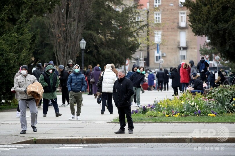 当局は、新型コロナウイルス感染が拡大しないよう、外に避難した住民に大勢で集まらないよう注意を促した。クロアチアでは200人以上の感染が確認されている。(c)AFP