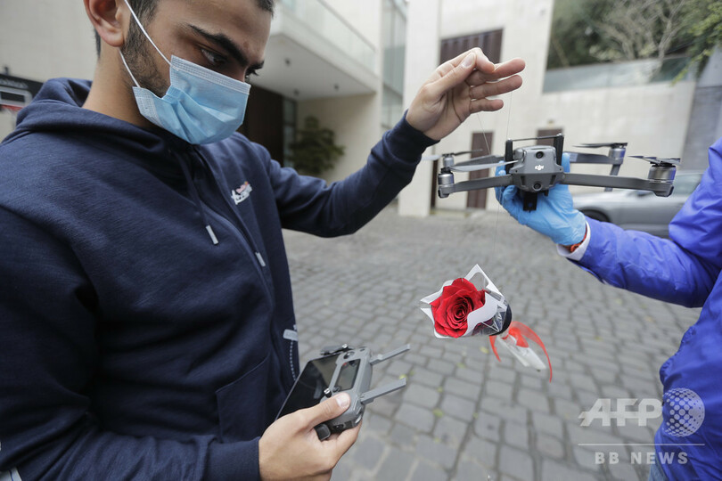 【3月23日 AFP】新型コロナウイルス(COVID-19)の影響で封鎖下にあるレバノンの町で21日、母の日を祝い、ドローンでバラが配達された。バルコニーでバラを受け取ったある母親は驚き、満面の笑みを見せた。