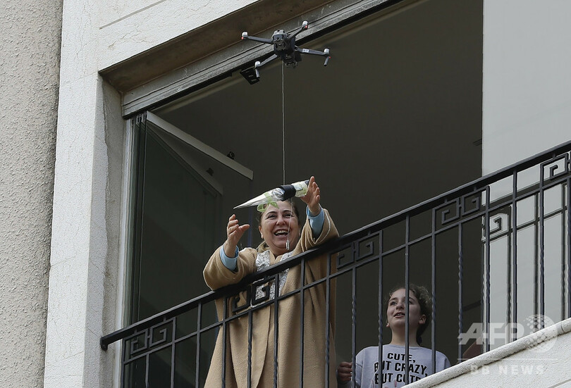 【3月23日 AFP】新型コロナウイルス(COVID-19)の影響で封鎖下にあるレバノンの町で21日、母の日を祝い、ドローンでバラが配達された。バルコニーでバラを受け取ったある母親は驚き、満面の笑みを見せた。