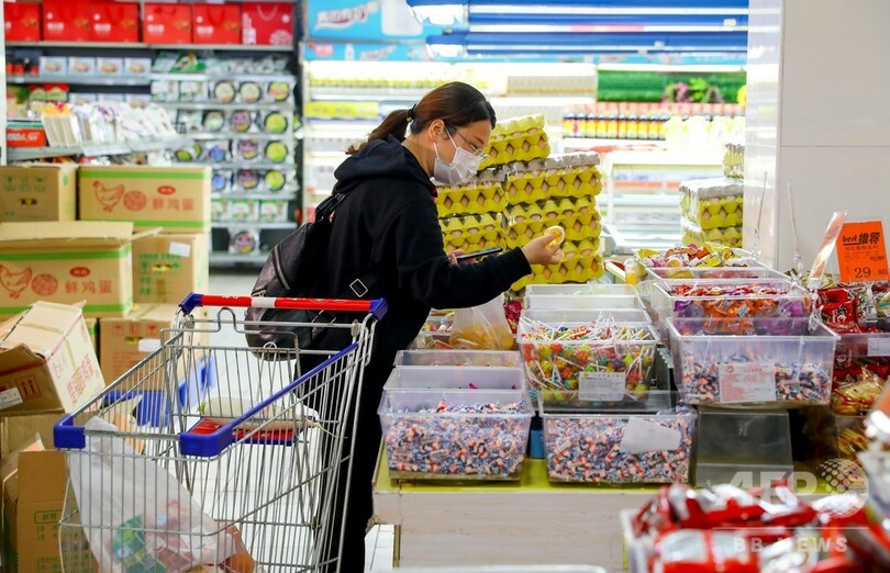 汪丹(Wang Dan)店長によると、無感染居住区の個人客向けに営業を再開するよう通知を受け、従業員は通常の消毒作業に加え、全てのショッピングカートと買い物かごを消毒した。さらに、商品を陳列する従業員と、集団購入者のための仕分け・梱包(こんぽう)作業を行う従業員に分かれて対応しているという。