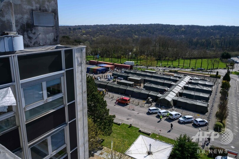 保健分野の専門家らは、フランスの多くの病院が既に新型ウイルスの症例であふれていると警鐘を鳴らしている。政府は病床不足に対応するため、野戦病院用の医療施設の設置を急いでいる。(c)AFP