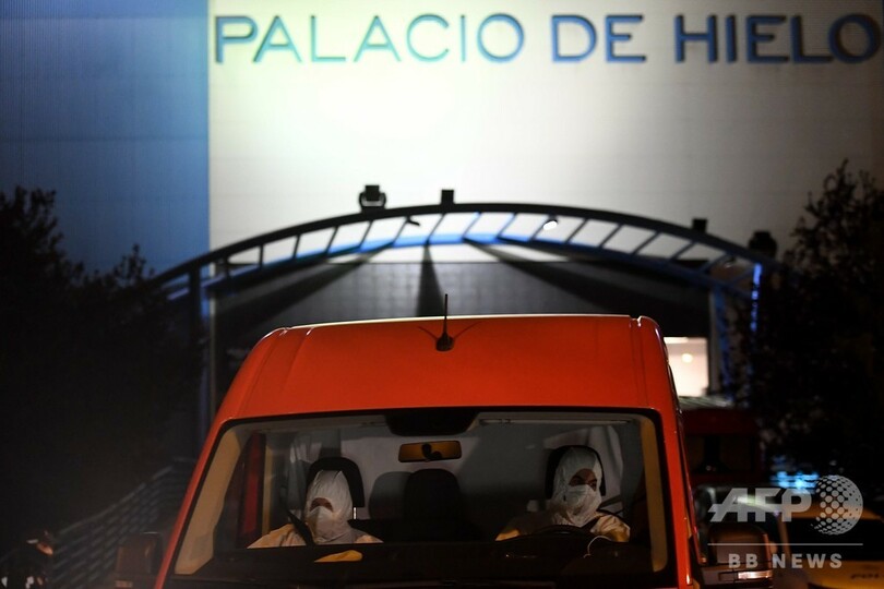 スケート場を遺体安置所に転用、新型コロナ死者急増で スペイン首都