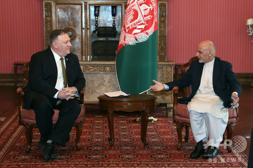 【3月24日 AFP】米国のマイク・ポンペオ(Mike Pompeo)国務長官は23日、アフガニスタンを電撃訪問し、アシュラフ・ガニ(Ashraf Ghani)大統領および対立するアブドラ・アブドラ(Abdullah Abdullah)氏と面会した後、アフガニスタン向けの支援金10億ドル(約1100億円)を直ちに削減すると発表した。ポンペオはさらに帰途、カタールの首都ドーハにも立ち寄り、アフガニスタンの旧支配勢力タリバン(Taliban)の幹部らと会談した。