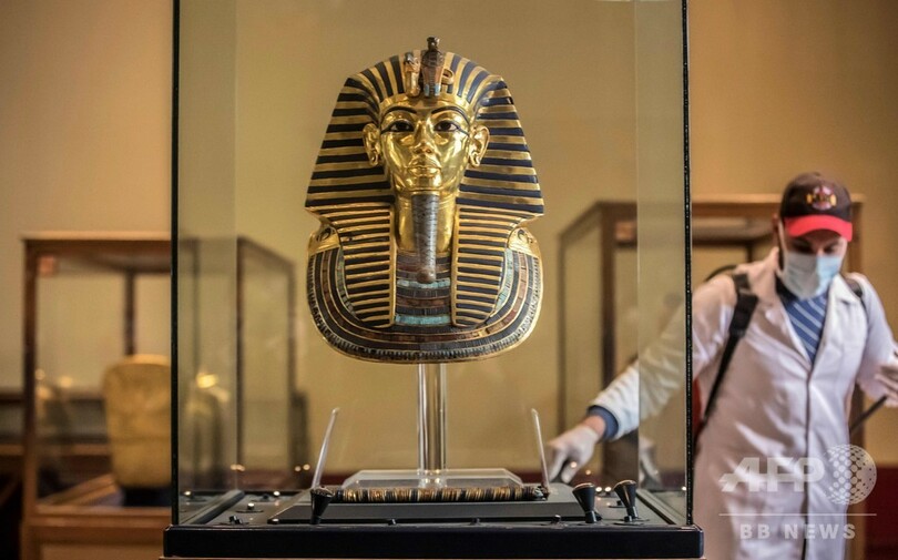 白衣に手袋、マスクを着用した作業員たちは、エジプトの先史時代からローマ(Roman)時代にかけての貴重な遺物が多数収蔵されている広大な博物館内のあちこちで、殺菌剤をまいた。