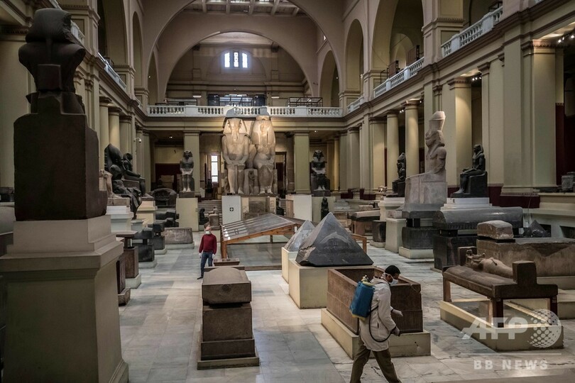 【3月24日 AFP】エジプト首都カイロにある考古学博物館(Egyptian Museum)で23日、新型コロナウイルスの流行拡大への懸念が高まる中、館内の消毒作業が行われた。