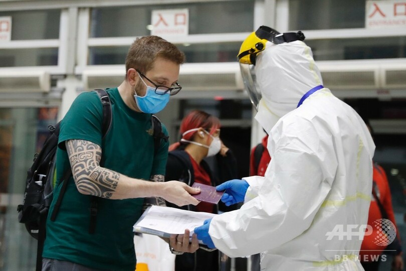 ここから、さらに集中隔離施設までバスで移動し、14日間にわたる医学的観察を受けることになっている。(c)CNS/JCM/AFPBB News