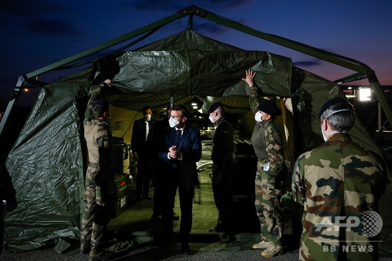 この発表に先立ちマクロン大統領は、新型ウイルスの大打撃を受けている東部ミュルーズ(Mulhouse)に軍が設置した野営病院を訪問。