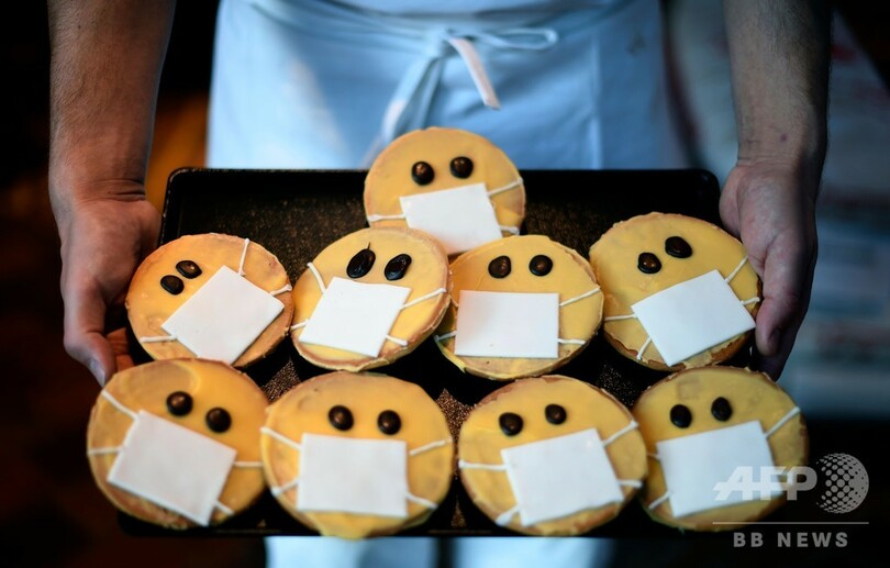 【3月27日 AFP】世界中で新型コロナウイルスの感染拡大が続く中、ドイツ西部ドルトムント(Dortmund)のベーカリーでは、トイレットペーパーロール形のケーキやマスク姿のスマイリービスケットなどが販売されている。