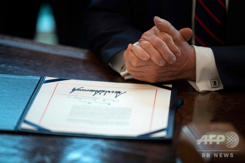 【3月28日 AFP】ドナルド・トランプ(Donald Trump)米大統領は27日、新型コロナウイルスの感染拡大を受けた2兆ドル(約220兆円)の経済対策法案に署名し、同法は成立した。トランプ氏はまた、米自動車大手ゼネラル・モーターズ(GM)に人工呼吸器を製造するよう命令した。