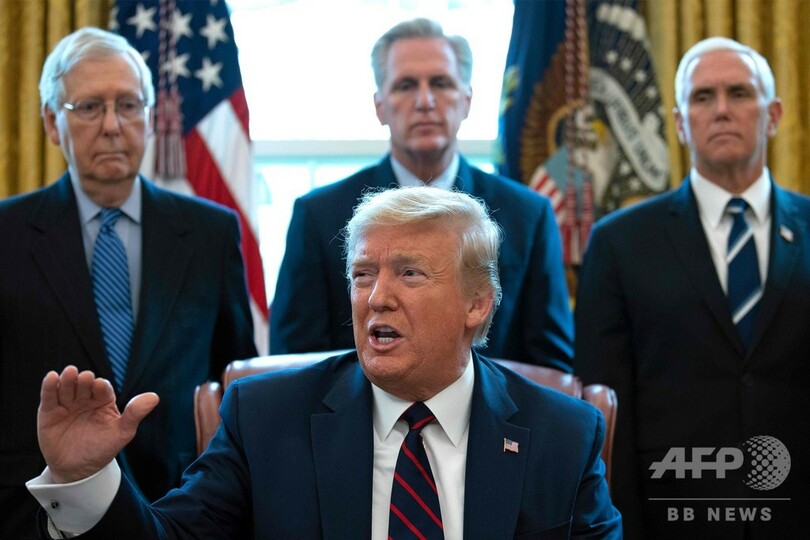 与野党は1週間に及んだ攻防の末に同法案を支持し、法案は大統領が署名する数時間前に下院で可決されていた。経済対策では平均的な4人家族に最大3400ドル(約37万4000円)を給付する。