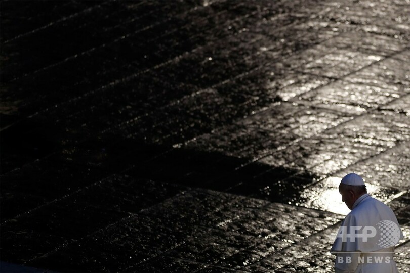 【3月28日 AFP】ローマ・カトリック教会のフランシスコ教皇(Pope Francis)が27日、バチカンの広大なサンピエトロ広場(Saint Peter's Square)に一人で立ち、新型コロナウイルスのパンデミック(世界的な大流行)に苦しむ世界中のカトリック教徒のために祈りをささげ、信仰によって不安を和らげるよう呼び掛けた。