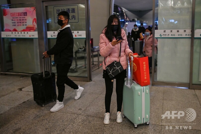 AFPの記者は28日、武漢駅に到着した人々でごった返し、多くの乗客らがキャリーケースを引く様子を目にした。
