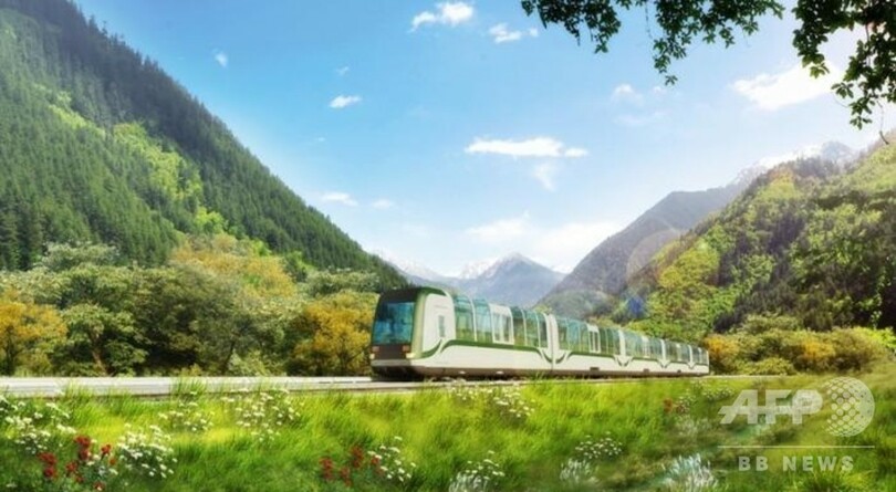 自然との調和を実現するため、設計者は走行ルートを地形の起伏に合わせ、列車が景観の中に溶け込み一体となるように配慮をしたという。また、この鉄道が開通後、四川省の西北部山岳地帯と成都平原が結ばれ、沿線の観光業と関連サービス業の発展を大きく促進し、雇用拡大や住民の所得増加が期待されている。(c)CNS/JCM/AFPBB News