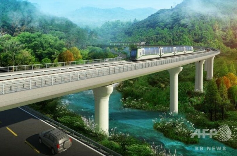 自然との調和を実現するため、設計者は走行ルートを地形の起伏に合わせ、列車が景観の中に溶け込み一体となるように配慮をしたという。また、この鉄道が開通後、四川省の西北部山岳地帯と成都平原が結ばれ、沿線の観光業と関連サービス業の発展を大きく促進し、雇用拡大や住民の所得増加が期待されている。(c)CNS/JCM/AFPBB News