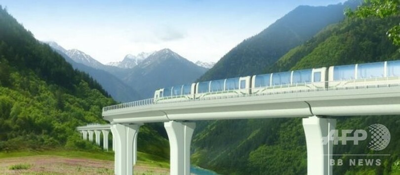 自然との調和を実現するため、設計者は走行ルートを地形の起伏に合わせ、列車が景観の中に溶け込み一体となるように配慮をしたという。また、この鉄道が開通後、四川省の西北部山岳地帯と成都平原が結ばれ、沿線の観光業と関連サービス業の発展を大きく促進し、雇用拡大や住民の所得増加が期待されている。(c)CNS/JCM/AFPBB News