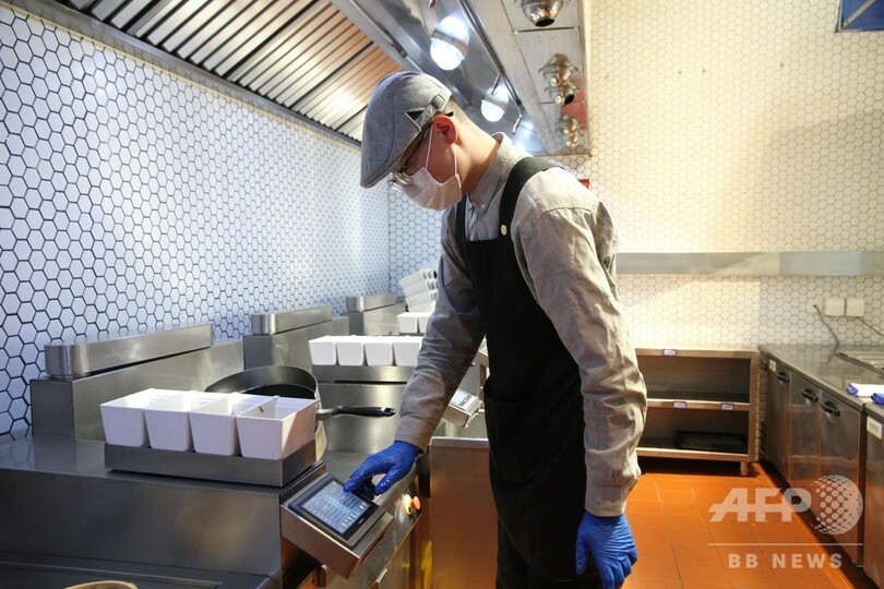 候さんは「普通のレストランの厨房は、1個の鍋に少なくとも1人のコックを配置し、1種の料理には3~4人のチームワークが必要です。この知能化レストランでは、1人で3個の鍋を管理できます。ロボットの導入により、人件費負担や離職率の高さなどの問題を解決でき、定期補修さえきちんとやれば、愚痴をこぼされることもなく働き続けてくれるのです」と話した。(c)CNS/JCM/AFPBB News