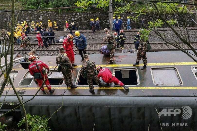 土砂崩れで列車が脱線・炎上 1人死亡、127人負傷 中国
