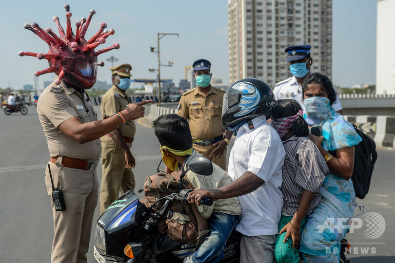 【関連記事】ベンガルールではウイルスを模した警察官が違反者らの周りで踊りまくる。
