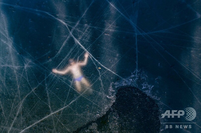 凍結湖をスイスイ フィンランドのフリーダイバー、101mの泳ぎ披露
