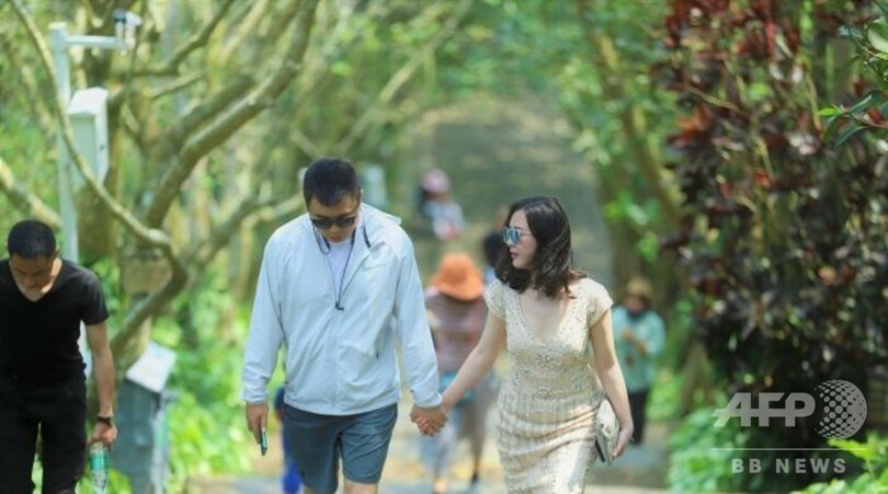 公園では、一部の観光客はもうマスクを外していた。観光客らは「この場所は人が少ないですから。新鮮な空気を吸い込み、自然の美しさを感じ、快適ですよ」と話した。観光地では、すべての観光客に検温と氏名などの情報登録を求める厳格な管理対策を続けているため、安心してマスクを外せるという。(c)CNS/JCM/AFPBB News