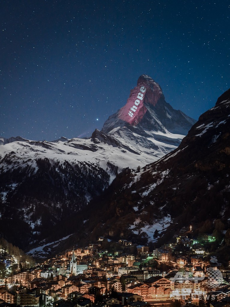マッターホルンに「希望」のメッセージ、光のアートが闇照らす 新型コロナで