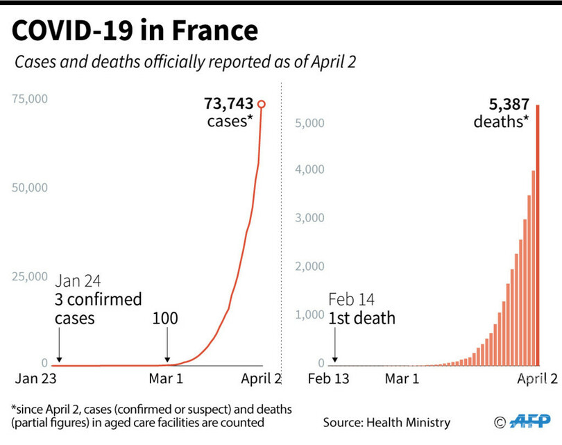 この統計は、各地のAFP支局が各国当局から収集したデータと世界保健機関(WHO)からの情報に基づいたもの。多くの国では現在、重症患者や入院が必要な人に対してのみ検査を実施していることから、実際の感染者はこれよりも多いとみられる。