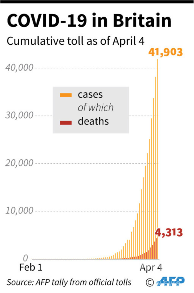 フランスの死者数は7560人、感染者数は8万9953人。その次は英国で、死者数は4313人、感染者数は4万1903人。
