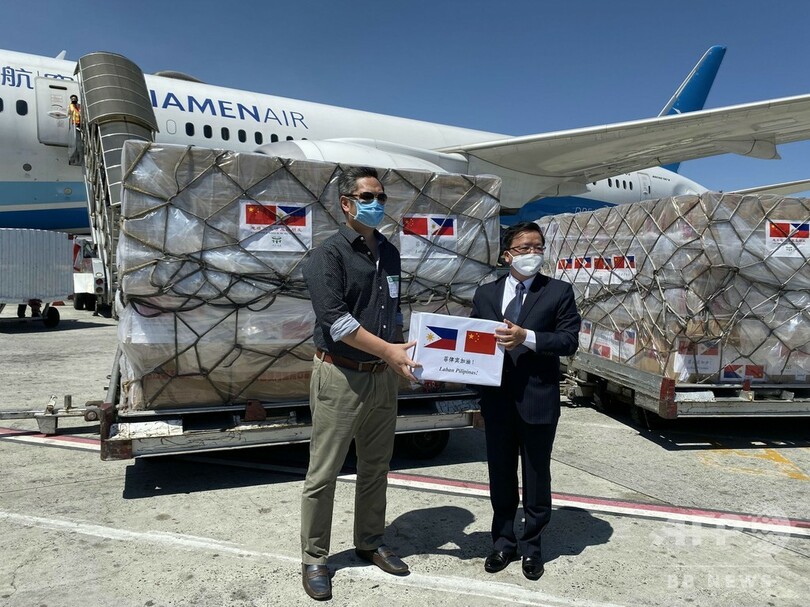 同便には、中国政府からの感染症対策の援助物資12トンも積まれていた。中国の黄溪連(Huang Xilian)駐フィリピン大使とテオドロ・ロクシン(Teodoro Locsin)外相が、マニラ国際空港(Manila International Airport)で行われた引き渡し式典に参加した。(c)CNS/JCM/AFPBB News