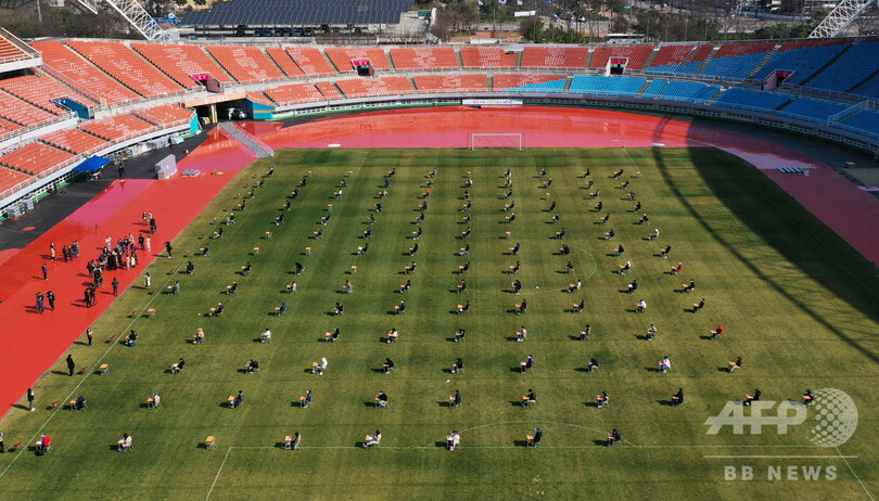 韓国、サッカー場で採用試験 コロナ対策で