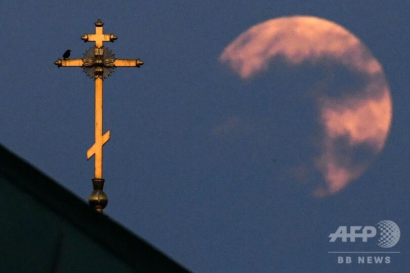 【4月8日 AFP】(写真追加)世界各地で7日から8日にかけて、地球に接近するため通常よりも大きく見える満月「スーパームーン」が観測された。欧米では、4月に観測される満月は「ピンクムーン」の愛称で親しまれている。(c)AFP