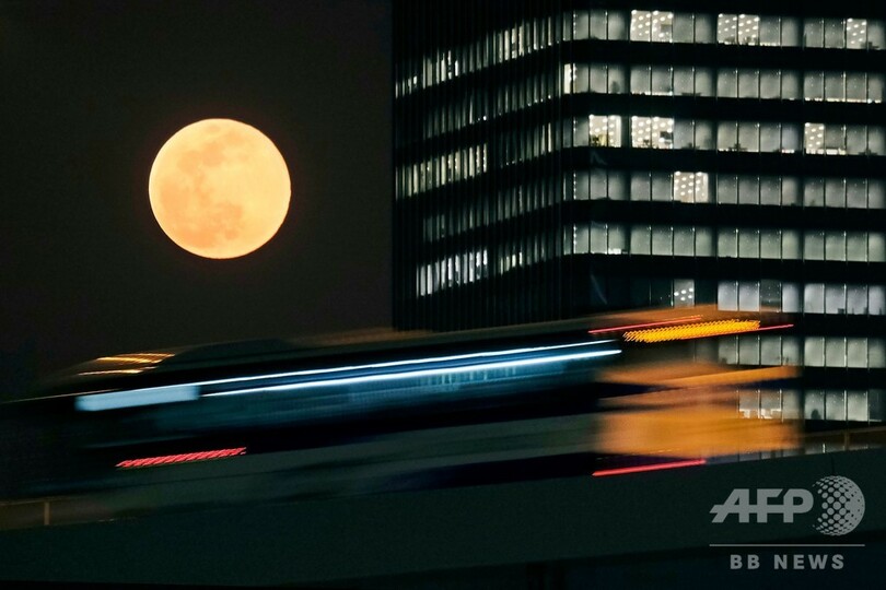 【4月8日 AFP】(写真追加)世界各地で7日から8日にかけて、地球に接近するため通常よりも大きく見える満月「スーパームーン」が観測された。欧米では、4月に観測される満月は「ピンクムーン」の愛称で親しまれている。(c)AFP