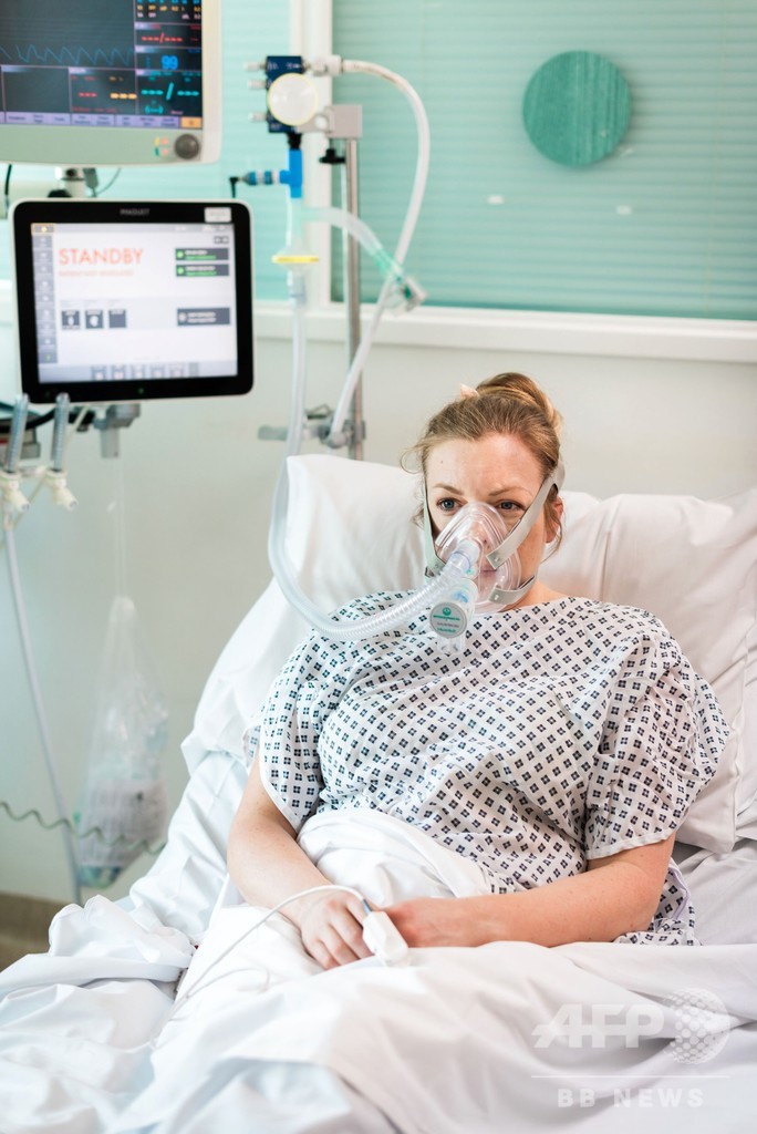「人工呼吸器という貴重な機器を、本当に症状が深刻な患者さんにのみ使えるようになるから、救える命も増えるだろう」「CPAP治療を行う患者さんの大部分が、人工呼吸器を使わなくても大丈夫になることが分かっている」 (c)AFP