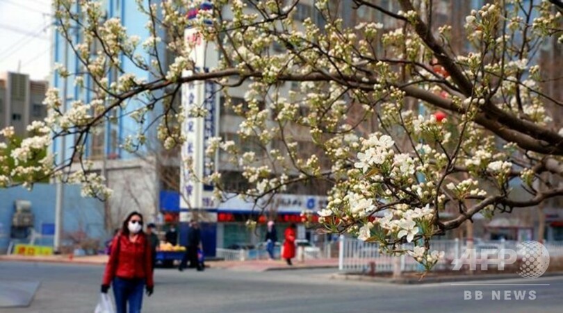 純白の花びらと都市の景観がマッチし、最近はSNSで写真をアップする人も多く、春のコルラ市の「映える観光スポット」として評判になっている。(c)CNS/JCM/AFPBB News