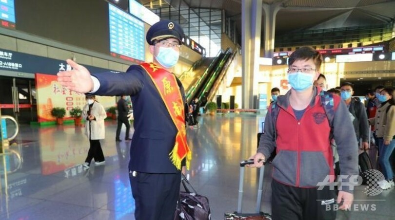 学生リーダーの王偉傑(Wang Weijie)さんは、「湖北省で、われわれは新型ウイルスとの闘いを体験し、社会の人々が結束する力を感じた。鉄道会社と大学が私たちのためにチャーター列車を手配してくれたこともその一例だ」と感謝した。(c)CNS/JCM/AFPBB News