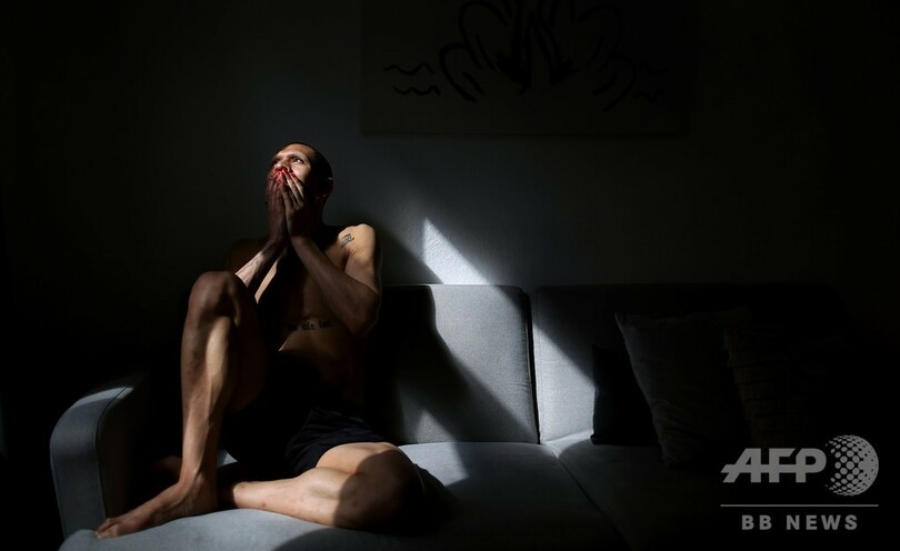 【4月17日 AFP】ドイツ・ライプチヒ(Leipzig)の賃貸アパートで、新型コロナウイルスの感染拡大を受けた自主隔離の中、オンライントレーニングを通して練習するライプツィヒ歌劇場(Oper Leipzig)団員の英国人バレエダンサー、ルーク・フランシス(Luke Francis)さん。同歌劇場は現在、閉鎖されている。