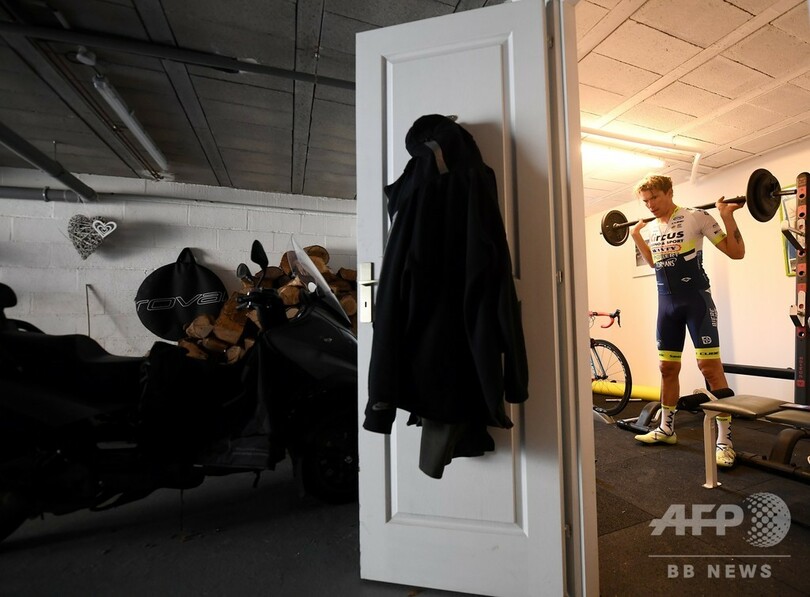 自転車ロードレーサーのヨアン・オフルド(Yoann Offredo、フランス)は、パリ南部にある自宅の地下室に自転車を固定し、シーズンが再開されるのを期待しながら練習に励んでいる。