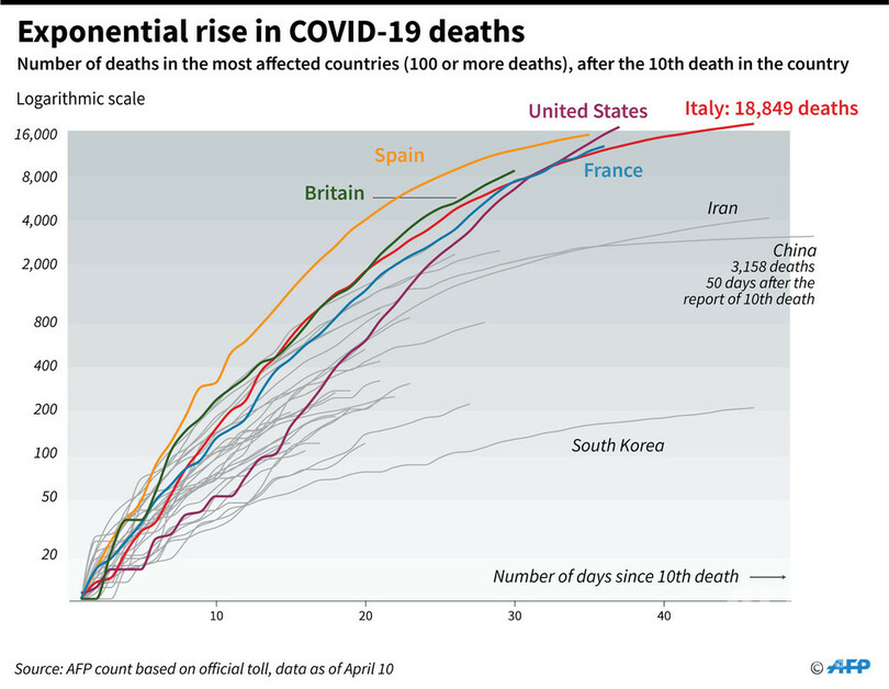 【4月12日 AFP】米ジョンズ・ホプキンス大学(Johns Hopkins University)の集計によると、米国の新型コロナウイルスによる死者数は11日、2万人を超え、イタリアを抜いて世界最多となった。