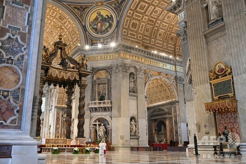 サンピエトロ大聖堂(St Peter's Basilica)の広大な大理石の床に、間隔を空けて立つわずか数人の司祭らと少人数の聖歌隊が出席した厳かな儀式で、教皇は静かに語った。