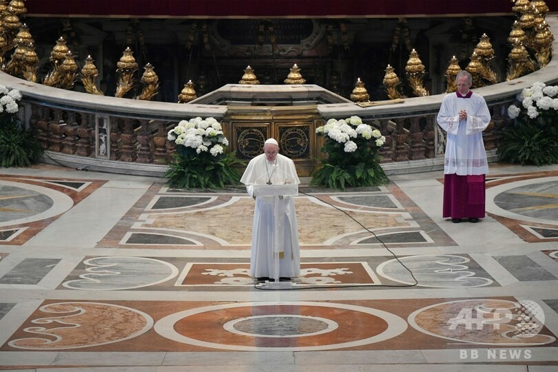 サンピエトロ大聖堂(St Peter's Basilica)の広大な大理石の床に、間隔を空けて立つわずか数人の司祭らと少人数の聖歌隊が出席した厳かな儀式で、教皇は静かに語った。