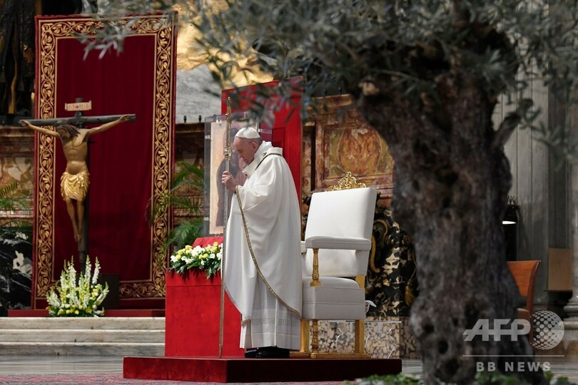 サンピエトロ大聖堂(St Peter's Basilica)の広大な大理石の床に、間隔を空けて立つわずか数人の司祭らと少人数の聖歌隊が出席した厳かな儀式で、教皇は静かに語った。