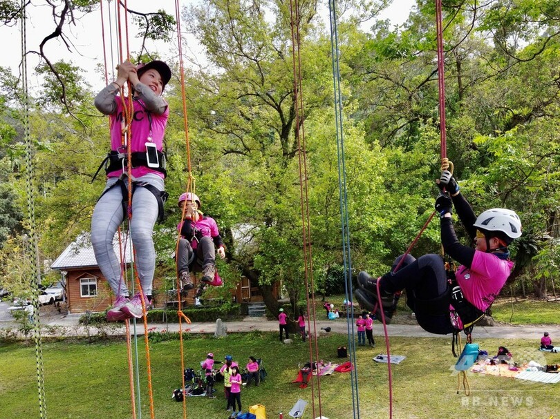 【5月5日 AFP】台湾中心部にあるキャンプ場で、女性ばかりのチームがロープを使い、7階建てのビルに匹敵する高さのセンダンの木に登っている。彼女たちは高所の恐怖と闘いながらも、自然とのつながりを再確認している。